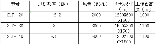 SLT系列集塵工作臺 該工作臺可以從源頭上捕集生產(chǎn)過程中產(chǎn)生的打磨粉塵,焊接以及等離子切割的煙霧。集塵工作臺配有粉塵過濾裝置、電氣控制系統(tǒng)并可選配動力裝置,可使工件進(jìn)行水平或垂直方向的回轉(zhuǎn),以提高勞動效率,并可為客戶要求提供專業(yè)的集塵工作平臺。現(xiàn)廣泛應(yīng)用于焊接、打磨和等離子切割,也可去毛刺,非金屬和金屬工件表面拋光、磨光。 SLT粉塵過濾裝置自帶式工作臺的特點是放置隨意,維修方便,生產(chǎn)工藝可進(jìn)行柔性編排。 SLT工作臺粉塵通過風(fēng)機產(chǎn)生的負(fù)壓經(jīng)正面排風(fēng)口和下排風(fēng)口進(jìn)入凈化器,氣流進(jìn)入導(dǎo)流通道,大顆粒粉塵與導(dǎo)流板碰撞后,大顆粒粉塵在重力的作用下落入集灰抽屜,含細(xì)小顆粒的粉塵進(jìn)入過濾室,含塵氣體由濾袋外表面穿過濾芯,粉塵則被濾芯阻攔在其表面,當(dāng)被阻攔的粉塵在濾芯表面不斷沉積時,通過手動清灰機結(jié)構(gòu)清掃濾芯,也可通過脈沖噴吹對濾筒清灰使得沉積在濾芯上的粉塵顆粒在振動的作用下脫離濾芯表面落入集灰抽屜中,使得整個濾芯表面都得到清掃,凈化后的潔凈空氣由風(fēng)道、經(jīng)風(fēng)機排出。獨特的臺式設(shè)計,并配有工作燈、打磨機電源插孔、夾具安裝孔,兩側(cè)板可隨時打開,方便較大工件使用。